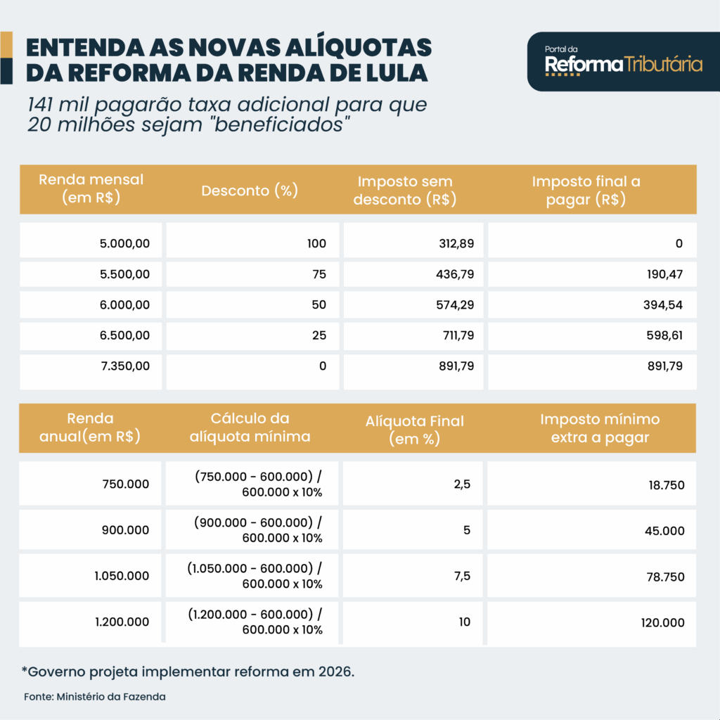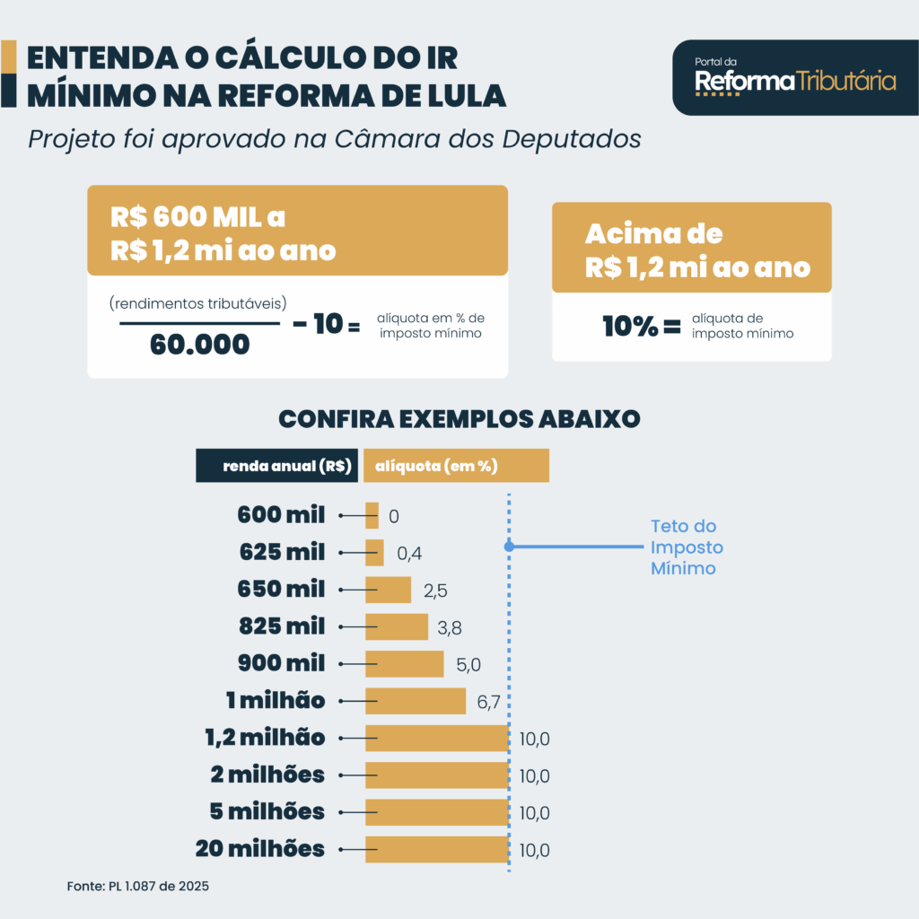 Essa faixa terá uma escala gradual de Imposto Mínimo. A alíquota também vai considerar uma fórmula matemática: